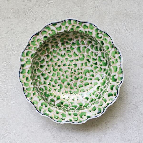 【送料無料】有田焼 グリーン濃菓子鉢(木箱付)