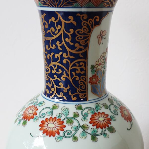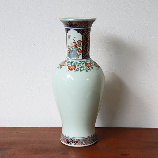 【送料無料】有田焼 12支那型花瓶 菊小鳥(木箱付)