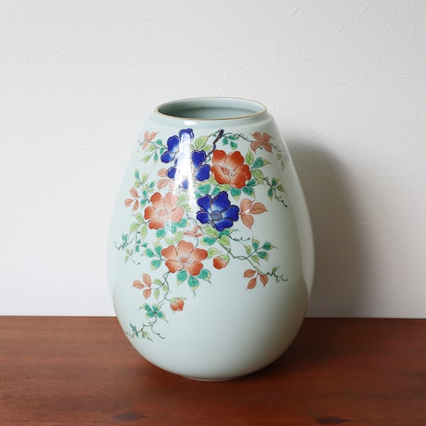 【アウトレット】【送料無料】有田焼 8寸福姫型花瓶 野バラ 18-140