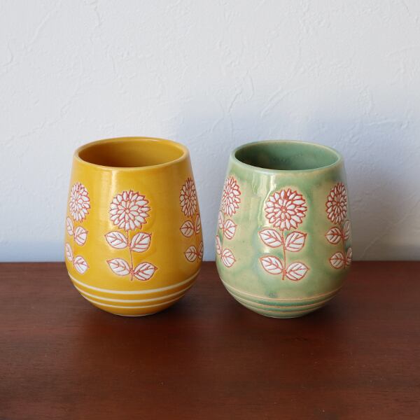 波佐見焼 ワインカップ 白盛菊(黄・緑) 1-131