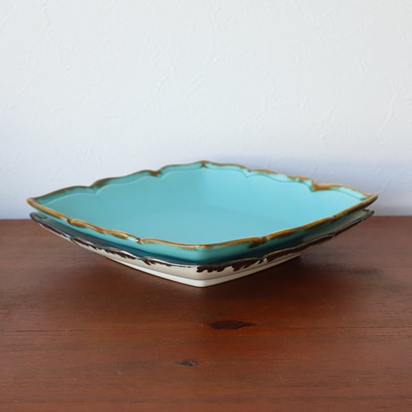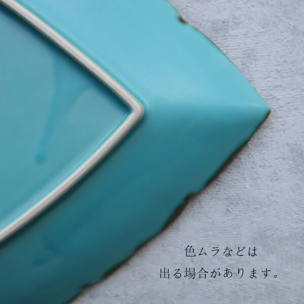 波佐見焼 菱型大皿(ターコイズ・チタン白マット)