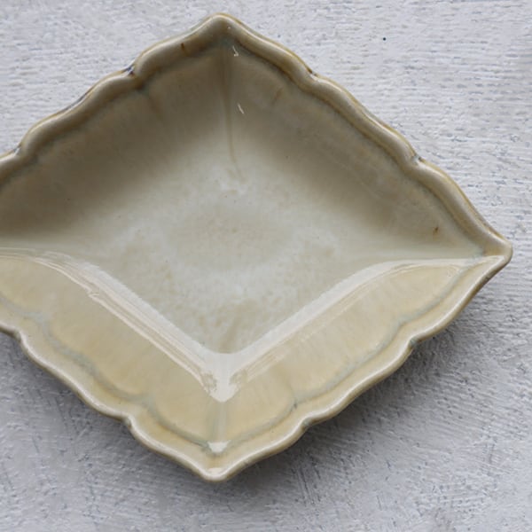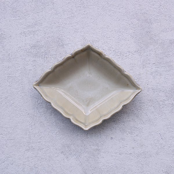 波佐見焼 菱型小皿 ワラ灰釉 8-095
