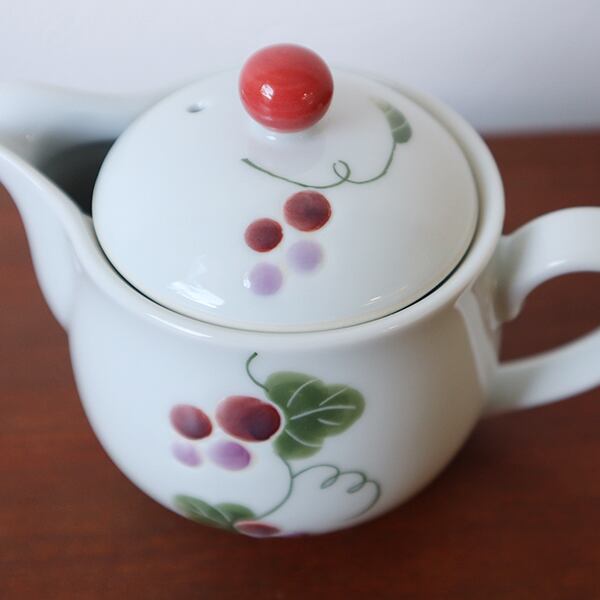 ────────────────────────── 手描きで描かれた葡萄がとてもかわいいです。 同じシリーズでマグカップやミニポット、プレートなどがあります。 セットにしてギフトとしてもおすすめです。 ────────────────────────── サイズ:約直径10.5×高さ2.2cm 材質・質感:磁器・つるつる ・電子レンジ 〇 ・食洗機 〇