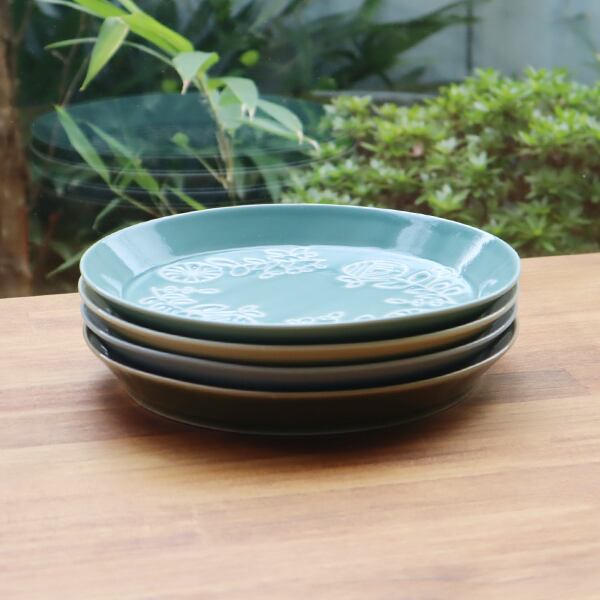 ワンプレートにぴったりな可愛いプレート。 とっても写真映えする大人かわいいアイテムです。 お揃いの小鉢もあります。 サイズ:約直径21.5×高さ2.5cm 材質・質感:磁器・つるつる ・電子レンジ 〇 ・食洗機 〇