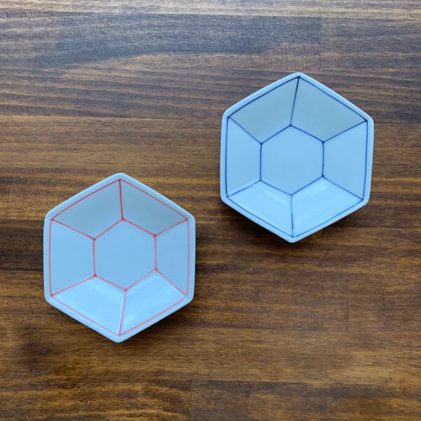 有田焼 6角皿 (赤ゴス線・ゴス線)33-032