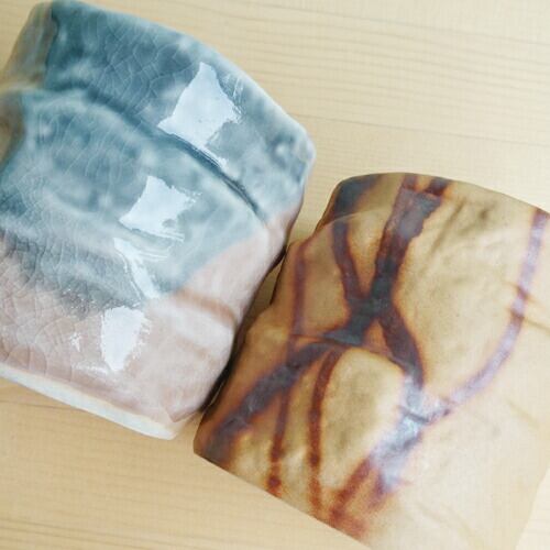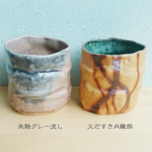 有田焼 石面グラス 【米釉グレー流し・火だすき内織部】 1-059