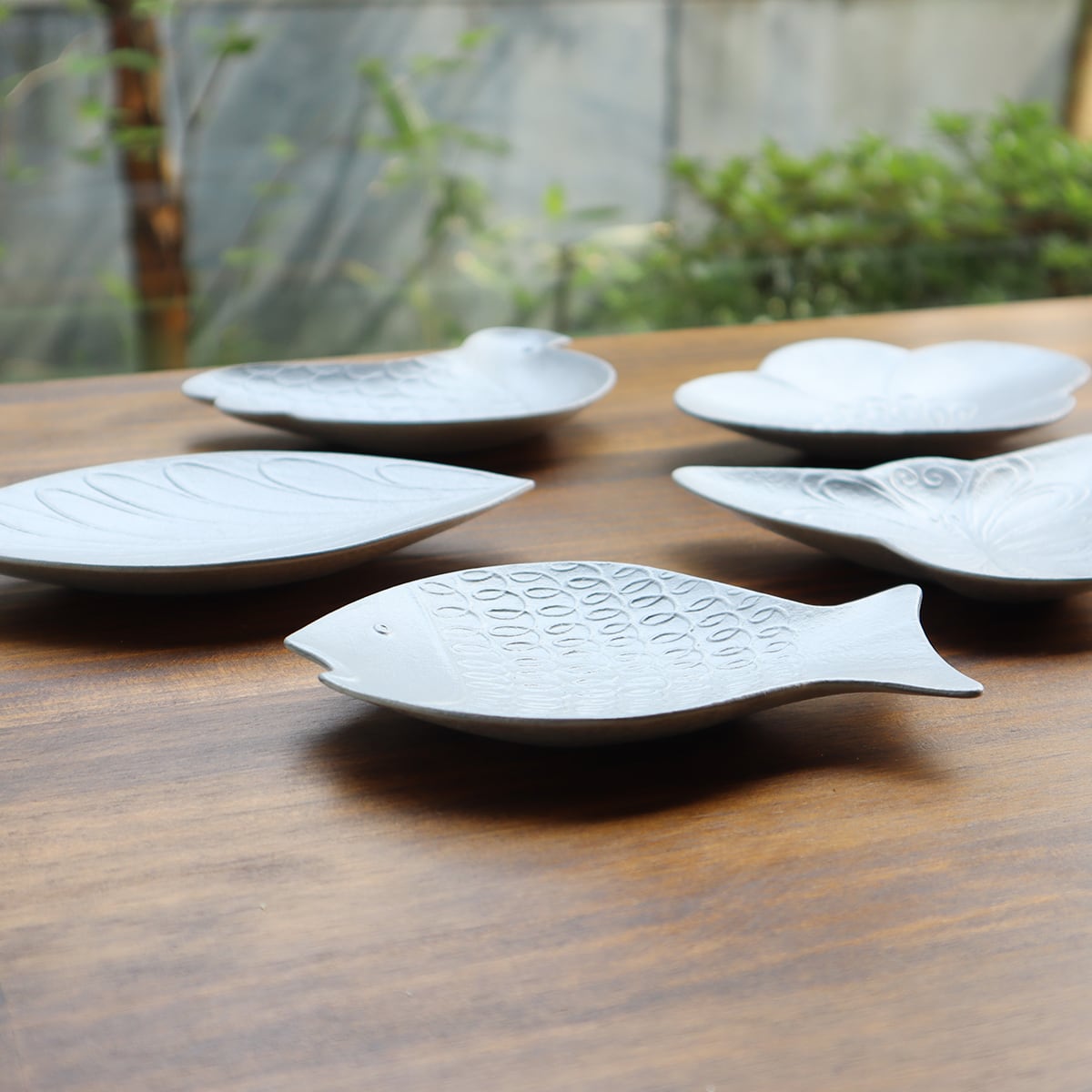 有田焼 錦ラスター雲母SILVER 型変皿(花・鳥・魚・蝶・葉) 33-049