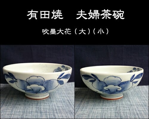 有田焼 手描き お茶碗 吹墨大花 【大・小】 9-095