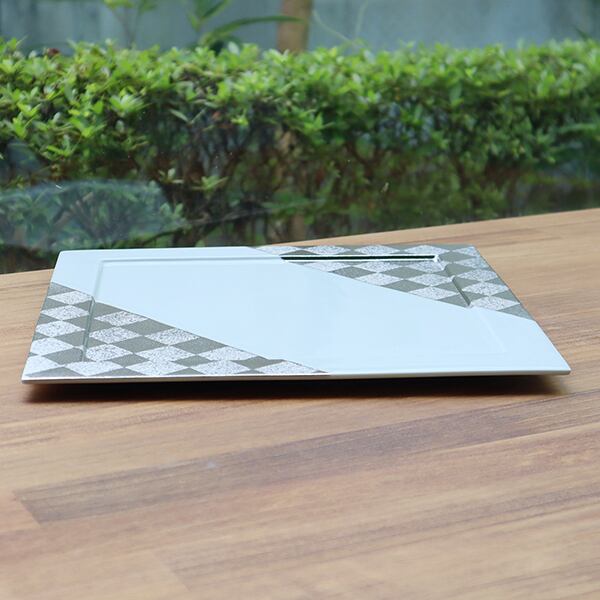 【まるふくオリジナル】有田焼 プラチナ濃市松内白ショープレート 33-120