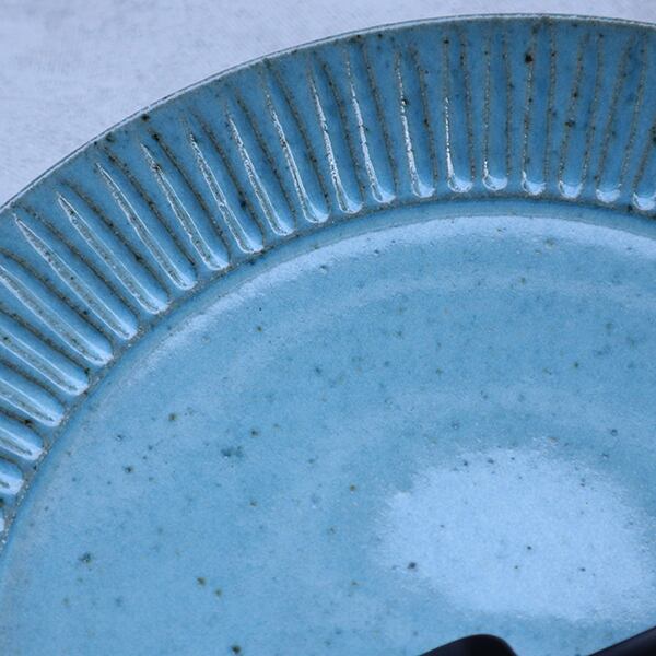 波佐見焼 ミントブルー しのぎ段付8寸皿 6-061