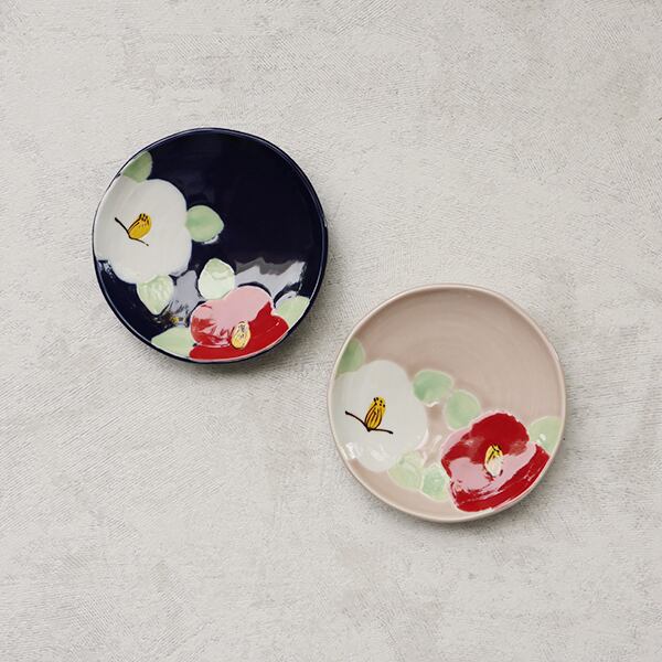波佐見焼 3寸皿 釉彩椿(ルリ・ピンク)8-094