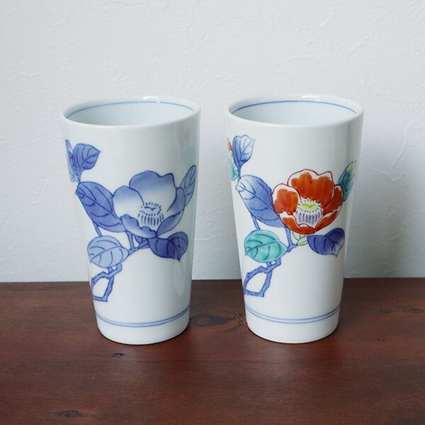 有田焼 ビアカップ (染付山茶花・染錦山茶花) 1-128